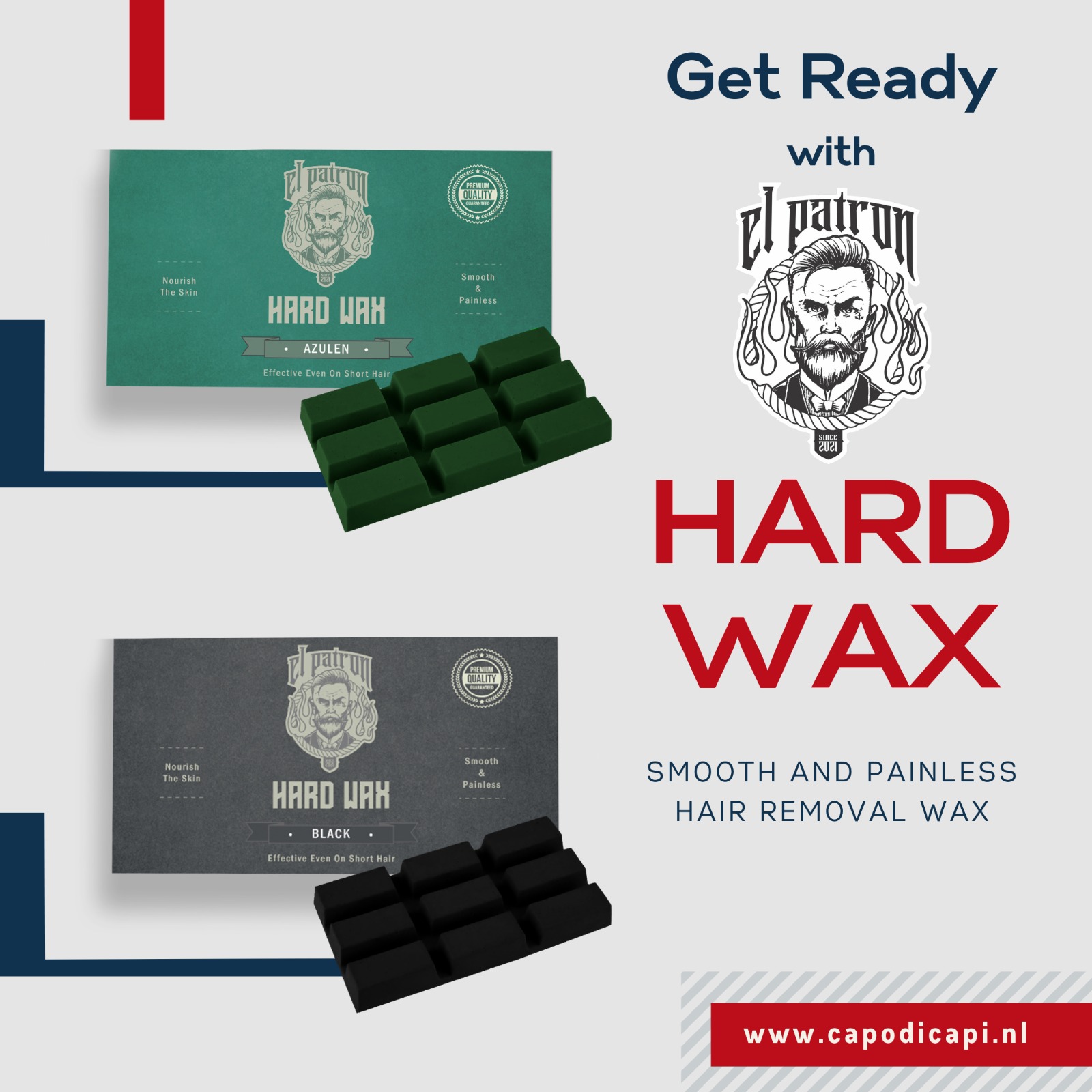 • GEBRUIK: Verwarm de was in een speciale wasverwarmer totdat deze volledig is gesmolten. Koel het dan af totdat het dezelfde honingdichtheid heeft. Zorg ervoor dat het gebied waar de wax wordt angebracht droog en schoon is. Controleer de temperatur van de wax op een klein deel van je huid. Breng de wax 1 mm dikke laag aan met een spatel in de richting van de haargroei. Verwijder na 3-4 seconden de wax door deze met twee vingers vast te houden en in één keer terug te trekken op de haargroei in tegengestelde richting met een beweging evenwijdig an de huid. Reinig daarna de huid met wasolie of reinigingsdoekjes. LET OP: De wax mag niet meer dan één keer op hetzelfde gebied worden gebruikt. Breng direct na het gebruik van de wax geen alcoholhoudende producten aan op de huid Verwijderd houden van direct zonlicht, buiten bereik van kinderen. Vermijd contact met de ogen.